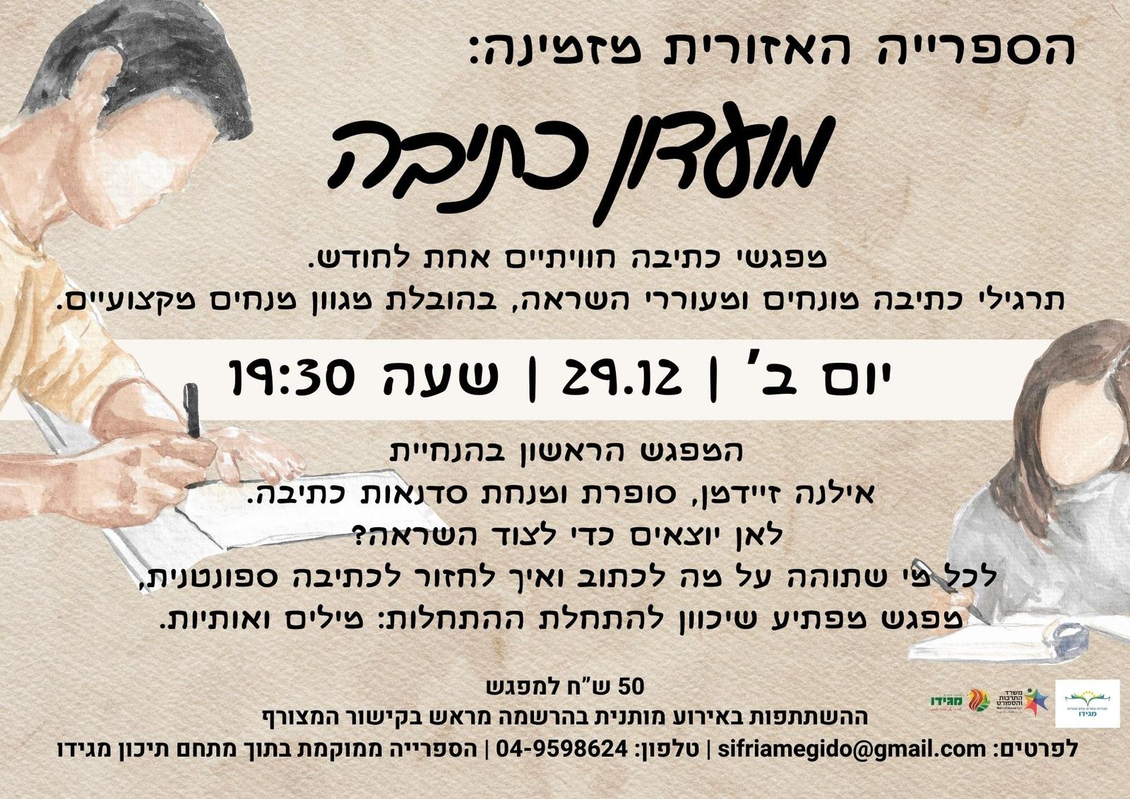 מועדון כתיבה בספריה האזורית מגידו: מפגשי כתיבה חווייתיים אחת לחודש.