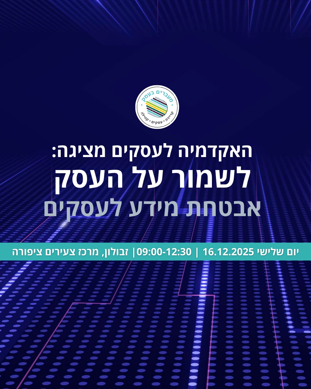 ללמוד איך לשמור על המידע של העסק שלך, לעמוד בדרישות החוק, ולהגן על העסק מפני טעויות, דליפות, ותקלות שעלולות לעלות ביוקר.