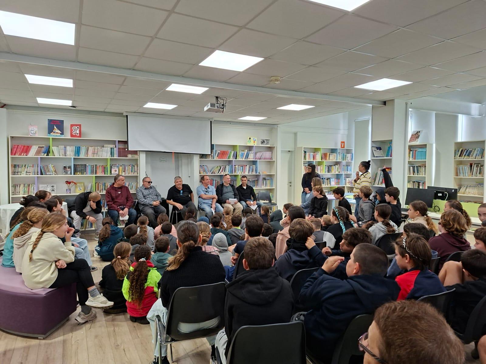 בין ילדי וילדות שכבה ה׳, לבין נהגי המועצה ויורם עמוס, מנהל מחלקת התחבורה. 🚌 המפגש זימן שיח פתוח ומקרב בין הילדים/ות לבין הנהגים שמסיעים אותם/ן בבטחה מידי יום.